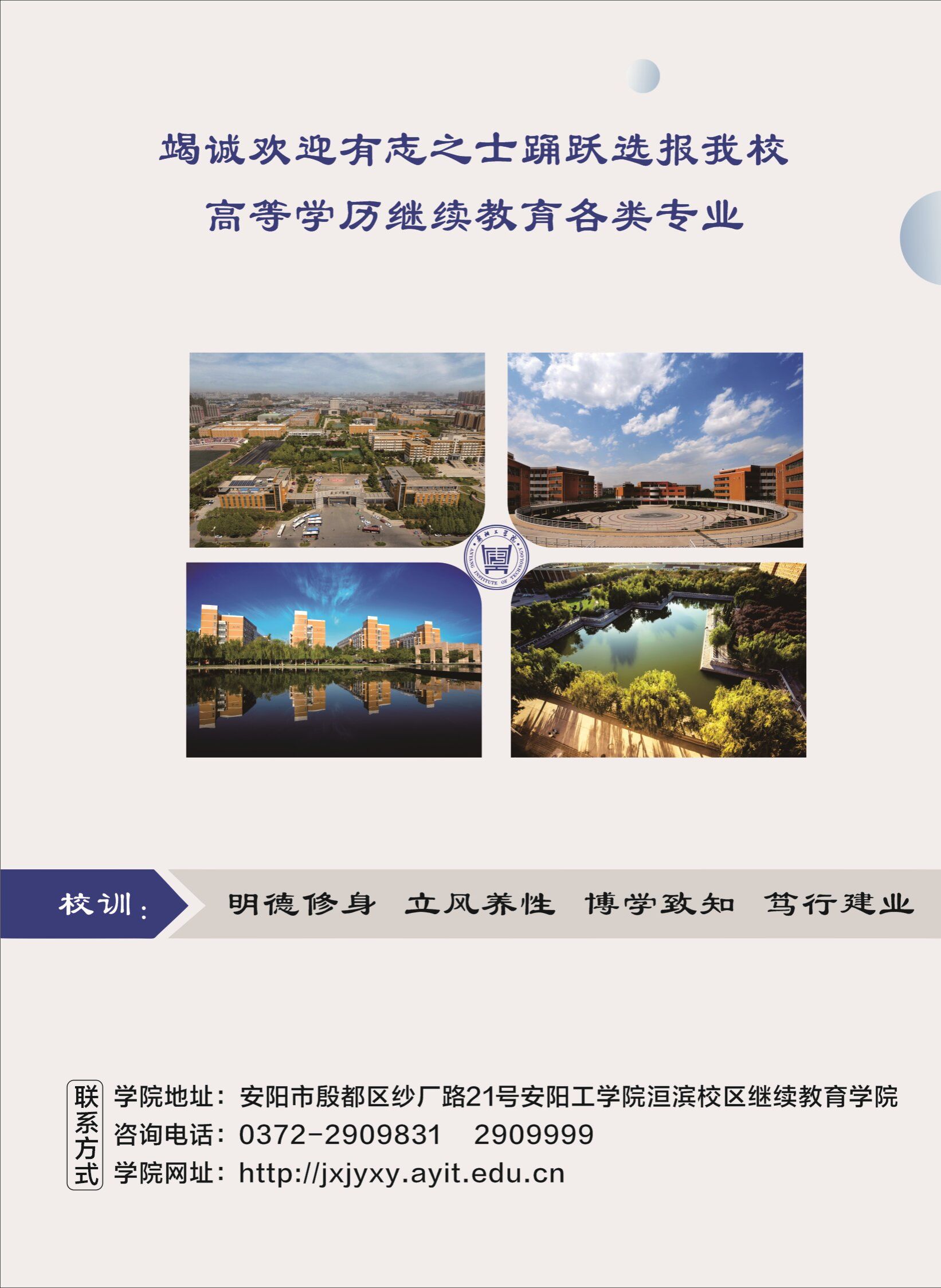 教务员工科:0372-2909999 招生培训科:0372-2909831