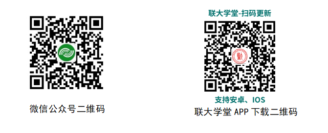 手机端学习:扫描二维码绑定账户(下载联大学堂APP或者关注微信公众号联大学堂)