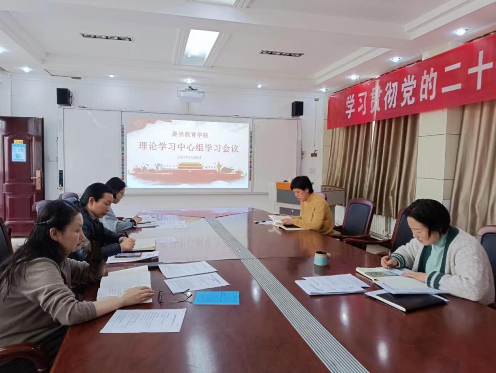 2023年2月28日上午,继续教育公司党总支在204会议室召开2023年二月份理论学习中心组会议,全体中心组成员参加会议,会议由党总支书记杨聪聪主持。