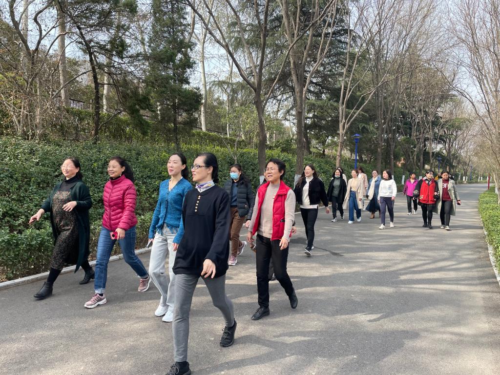 春暖花开,阳光明媚。3月5日上午十点,洹滨校区开展女职工绕洹水公园一圈健步走活动,庆祝“三八妇女节”。